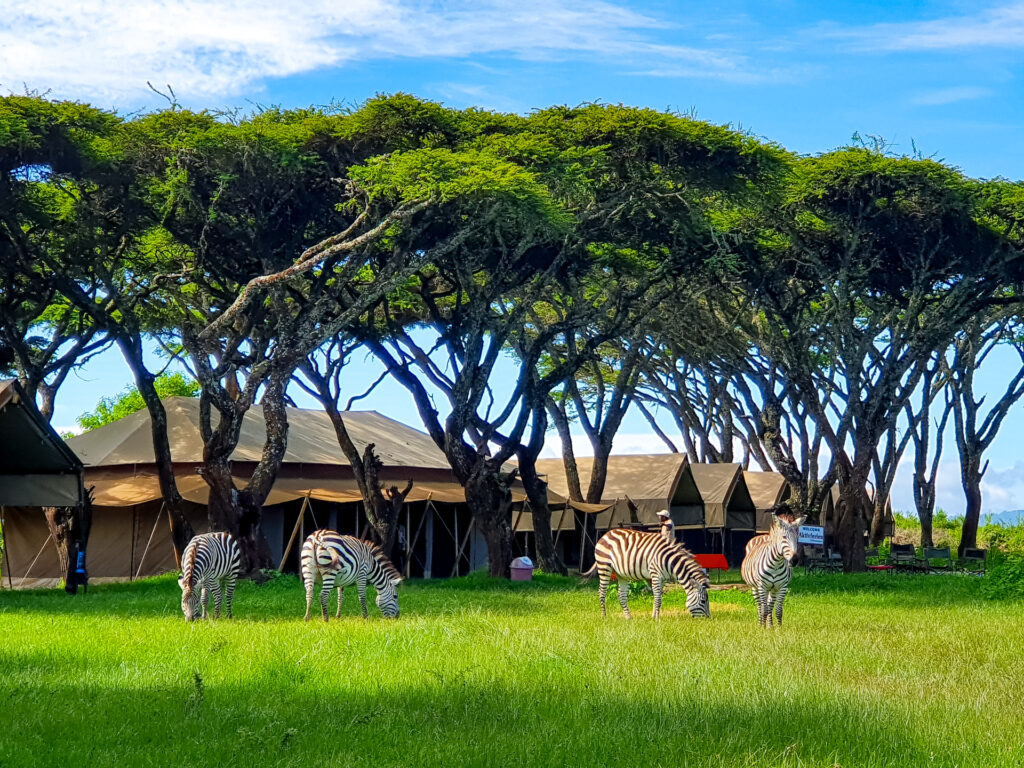 Heute durchqueren wir den ganzen Lake Manyara-Nationalpark vom Südeingang bis hinauf zum Nordeingang. Nur wenige Touristen besuchen den traumhaften südlichen Teil. Die ganze afrikanische Wildnis ist im dichten Urwald vertreten und unzählige Vogelarten und Flamingo-Kolonien sind am Lake Manyara anzutreffen. Anschliessend überqueren wir das Rift Valley und fahren nach Karathu. Nun geht es hinauf zum weltberühmten Ngorongoro – mit 18 Kilometern Durchmesser und einer Tiefe von 800 Metern ist er der grösste Krater der Welt. Im inneren Rand unterhält Aktivferien seit Jahren ein eigenes exklusives Camp. Wir geniessen die Abendstimmung am prasselnden Lagerfeuer und lassen uns verzaubern vom afrikanischen Busch und den für uns fremden Geräuschen.
