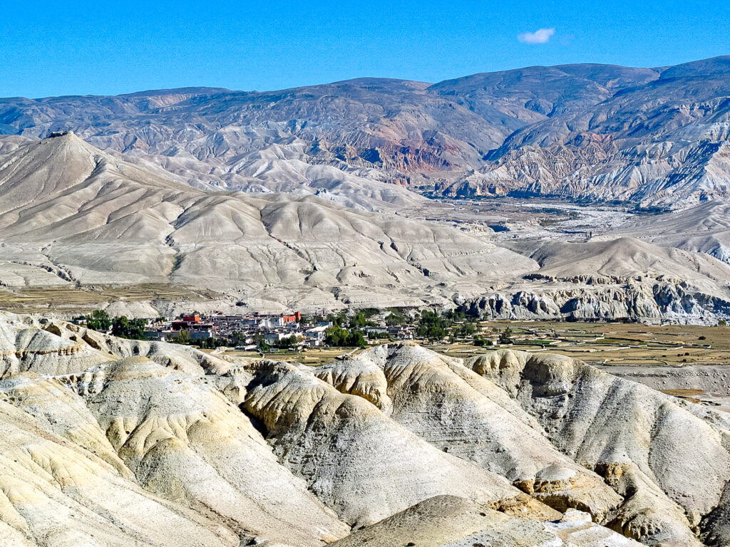 Heute verlassen wir das Mustang-Gebiet wieder. Nach einem kurzen Aufstieg haben wir nochmals einen wundervollen Ausblick auf den Dhaulagiri, bevor wir via Lupra zurück zum Ausgangspunkt Jomsom zurückwandern. Wanderzeit ca. 5 – 6 Stunden.
