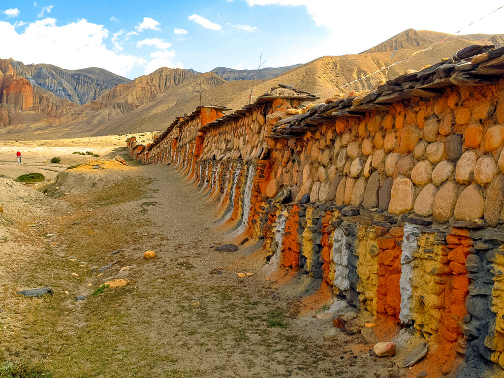 Im Regenschatten des Himalaya liegt das Mustang-Gebiet. Es ist karg, aber dennoch farbenreich und weit. Statt üppiger Wälder erwarten Sie rötliche Schluchten, sandige Ebenen und Felsformationen, die im Licht des Himalaya in unzähligen Nuancen leuchten. Das gleichmässige Gehen durch diese endlosen Weiten wirkt meditativ und lässt Sie spüren, wie befreiend Loslassen sein kann.